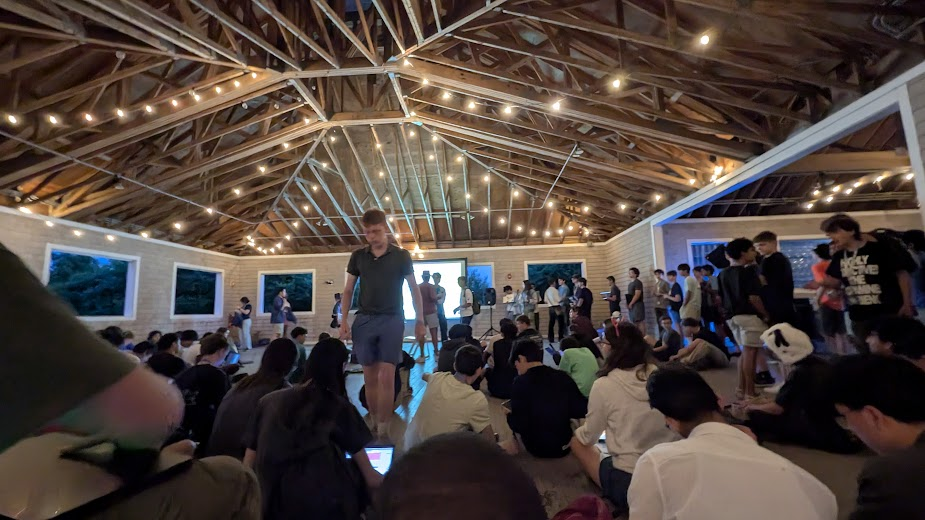 Now, mini events - and were there a ton. Every day, experienced members and staff would lead workshops, ranging from running a nonprofit (by Zach, the founder of Hack Club), to writing shader graphics (by Chris, who you might know from Sinerider). One of my favorite small events was the Lightning Talks, a collection of impromptu (or prepared?) talks, from technical one like Carlos's HTTP Fingerprinting, to Fox's C++ semi-rant talk, to the absolutely enthralling Hot To Go improv, all for a terrible pun, by Bear. To break the monotony of some of the longer periods of hacking, we had a few more interactive, pure fun things. For example - a mock Hot Ones, where we did the entire Hot Ones challenge, or where we competed to build a tower to win plushies.